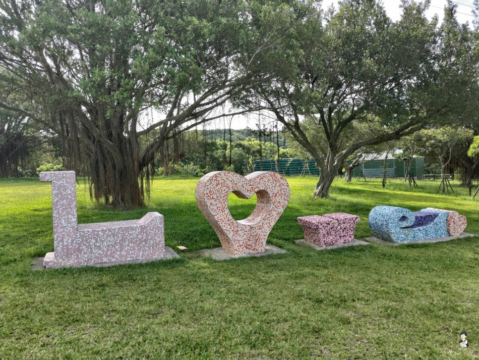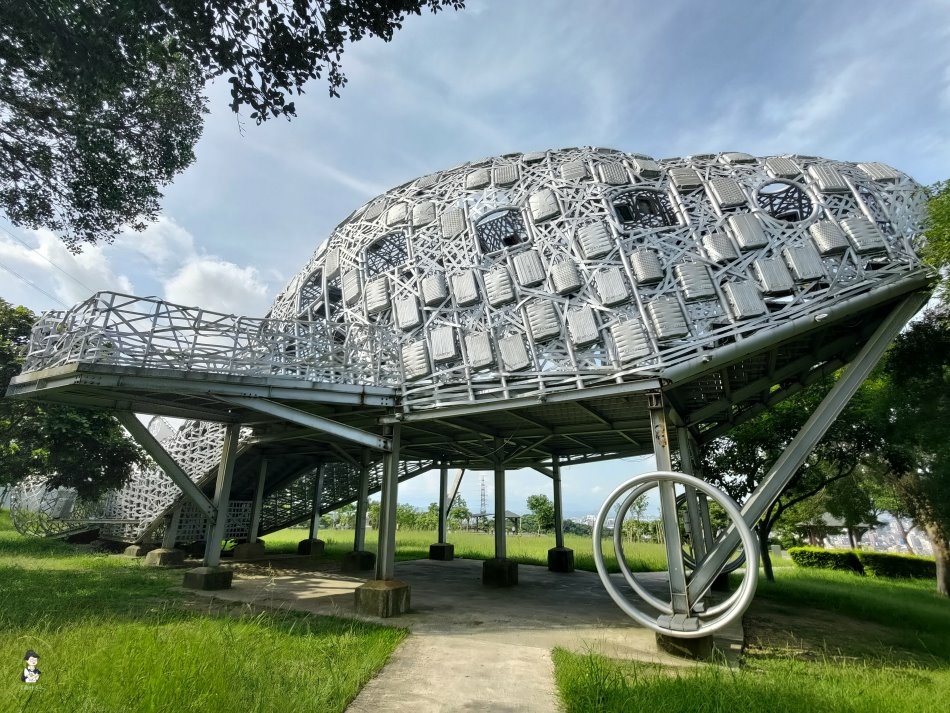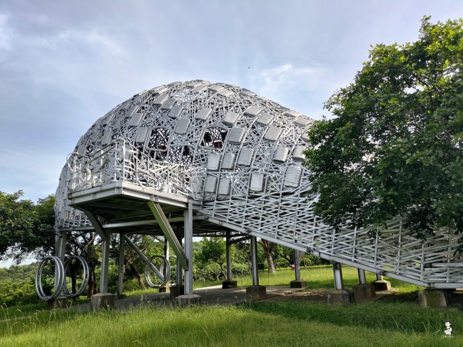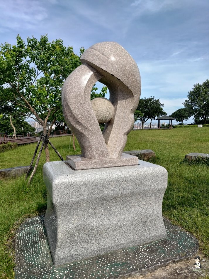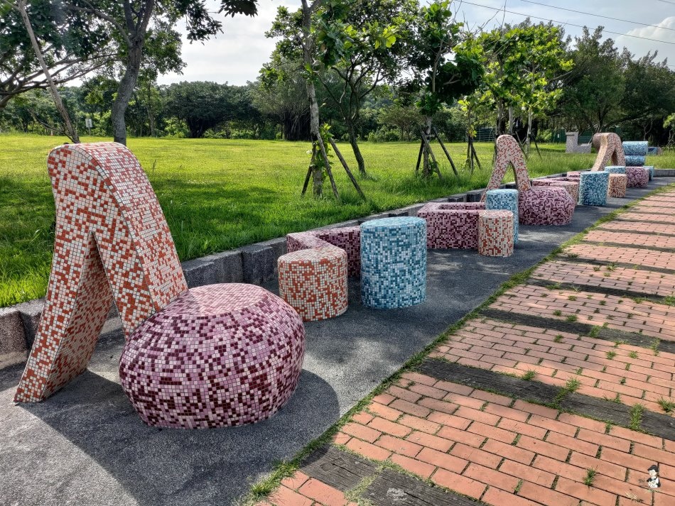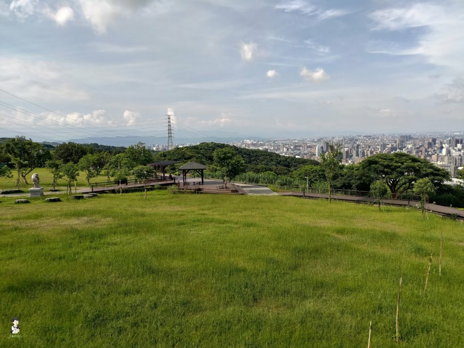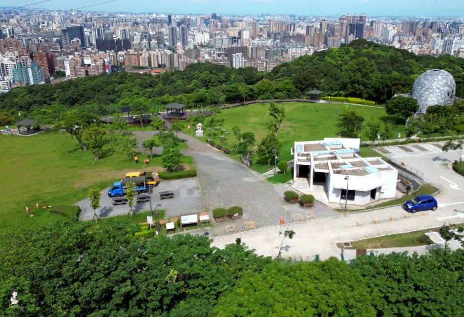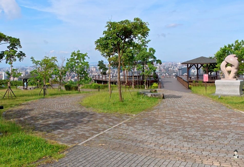 環保公園內設有步道, 木造景觀涼亭, 大草皮, 拼貼座椅等設施, 坐在涼亭吹著徐徐的微風, 享用買來的早餐同時觀賞市區景觀也是一種享受