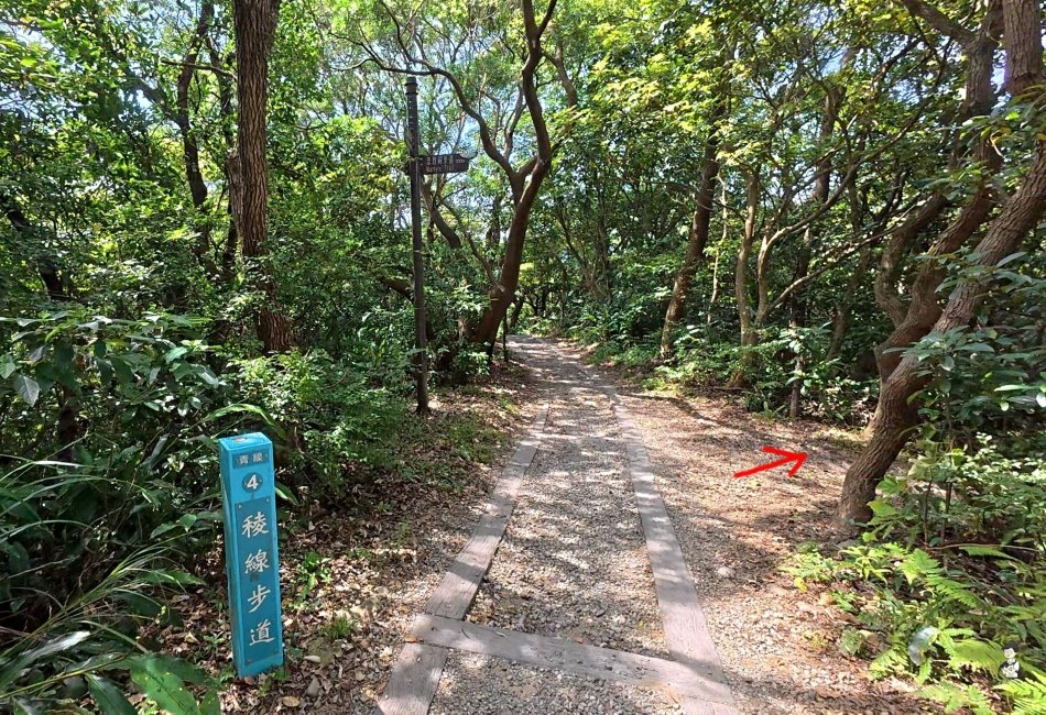 走到稜線步道4號路標時, 右岔路下切往忠烈祠步道交會處還有330公尺