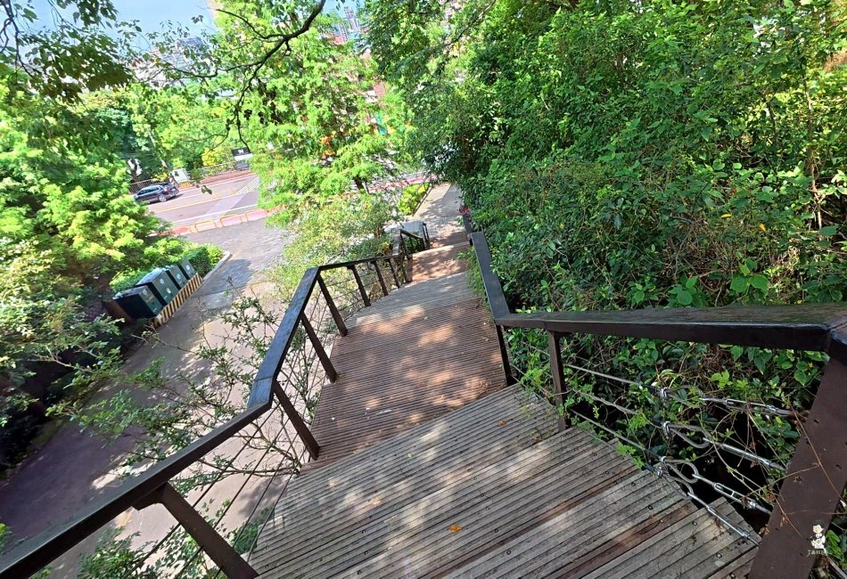 這段下切路就比較陡, 不過沿途都有鋪設透水磚, 小心行走即可