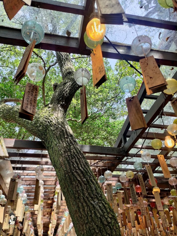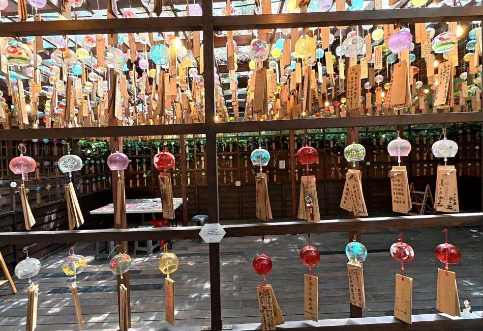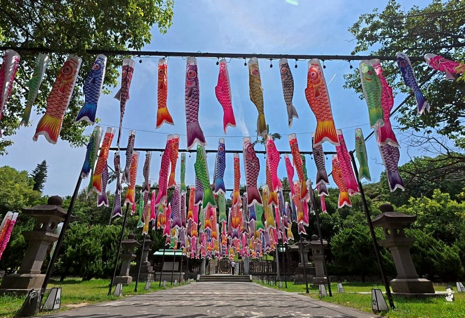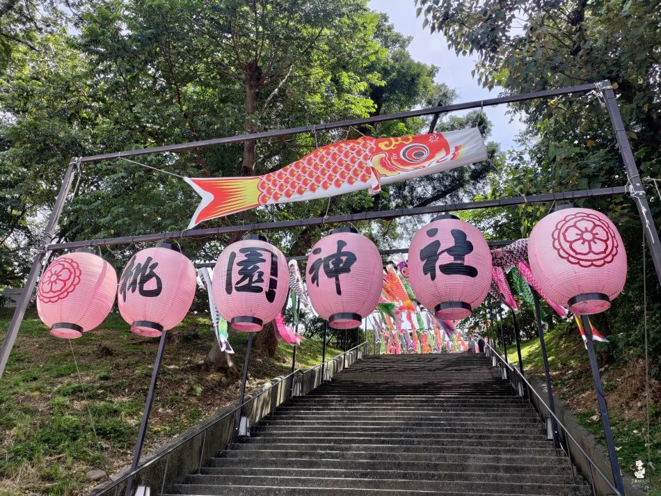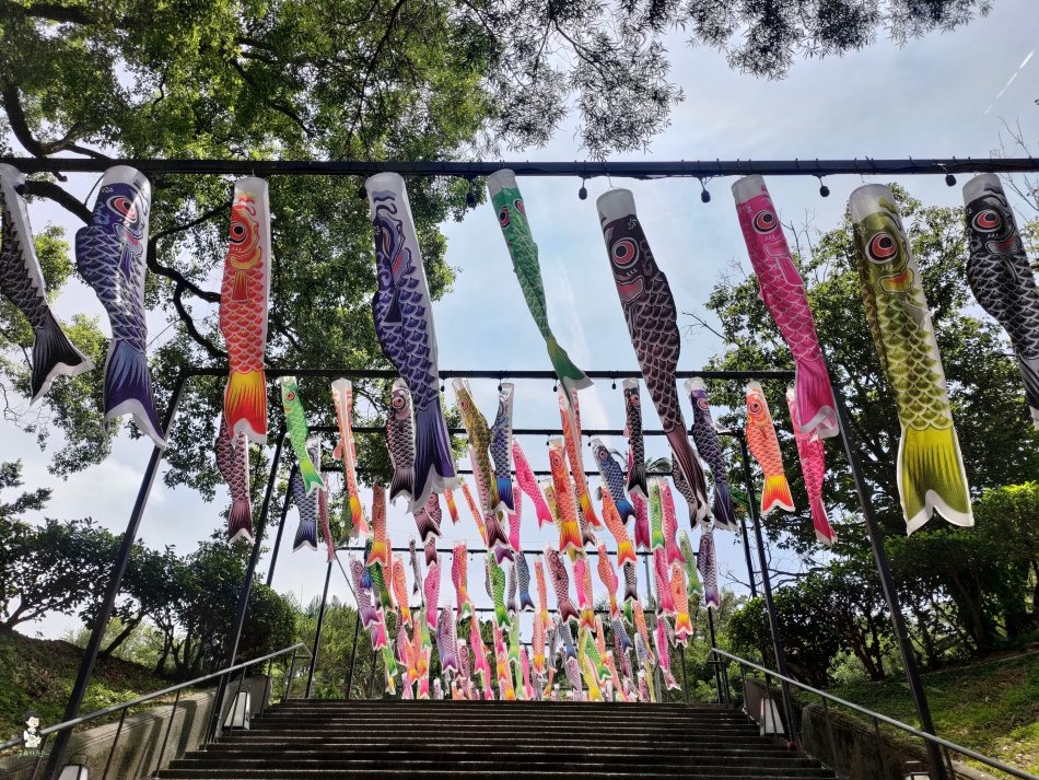 登上階梯一直到參道裝飾了一整排的鯉魚旗讓人感覺像是秒到日本