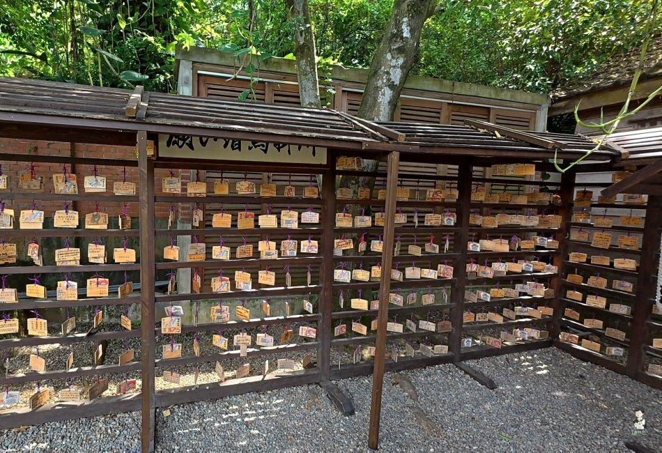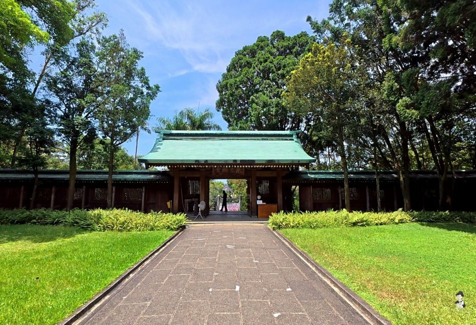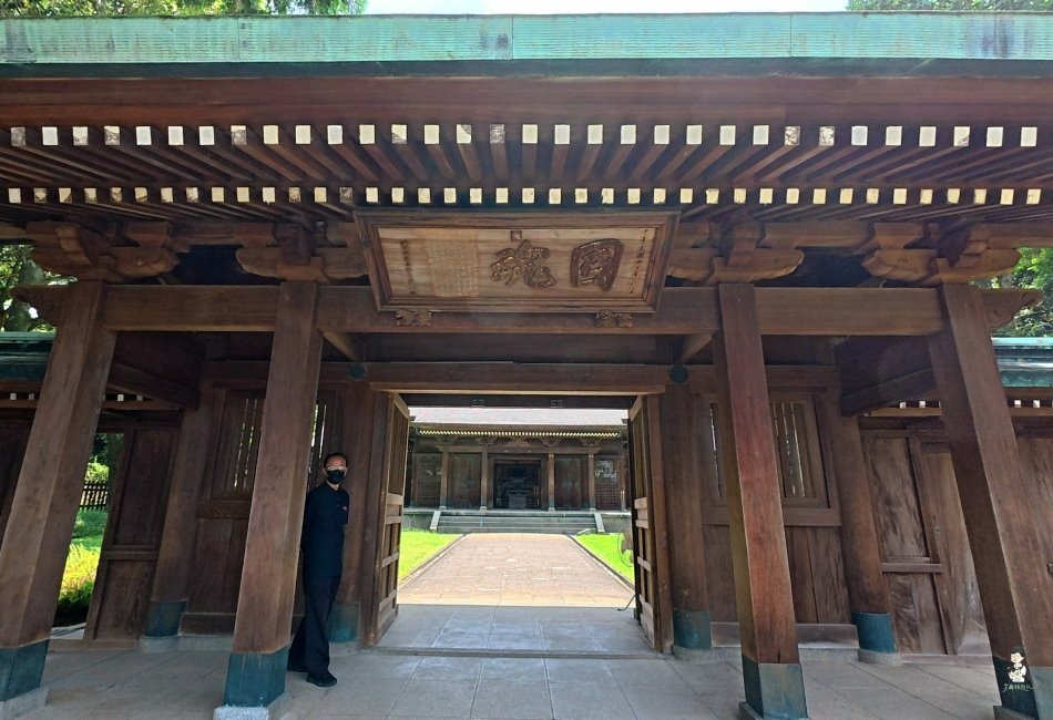 園區內有咖啡亭, 井上豆花, 四周種滿了松柏古樹, 環境清幽, 建物規模完整, 建築群主要以安置個人靈位的「本殿」、供一般信眾參拜的「拜殿」、神職或管理員辦公的「社務所」、進入神社參拜前可供民眾洗手與漱口的「手水舍」等組成, 另外還有鳥居、石獻燈、高麗犬、銅馬雕塑、神社參道等設施, 幾乎是復刻日本境內的神社